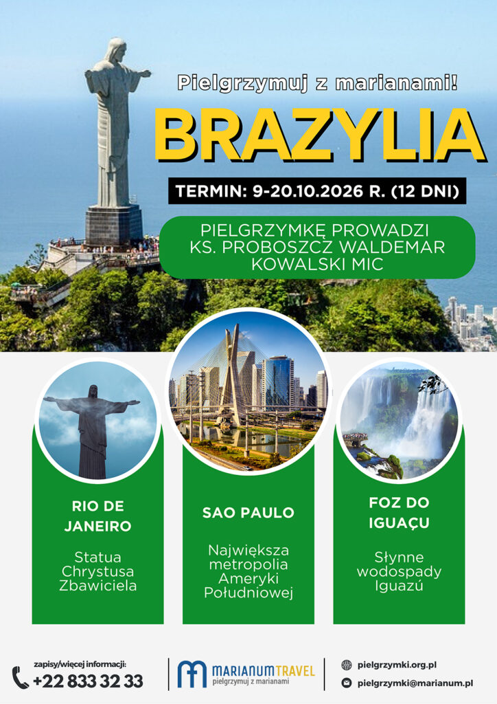 Organizator: Biuro Pielgrzymkowe Księży Marianów, ul. św. Bonifacego 9, Warszawa.