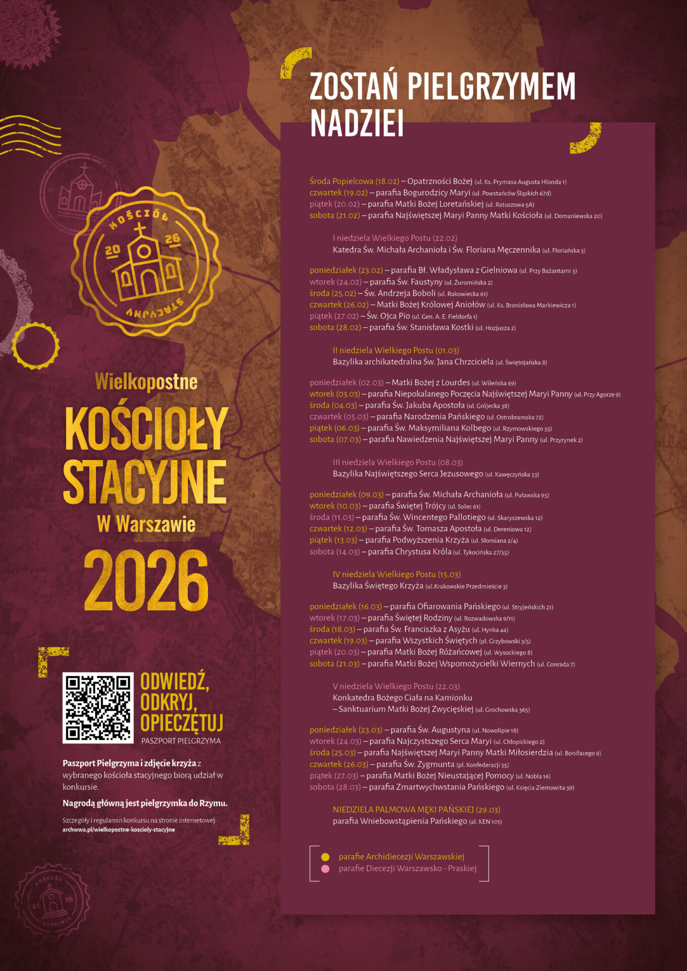 Czterdzieści kościołów, o szczególnej historii i wyjątkowym znaczeniu dla Warszawy, będzie w Wielkim Poście miejscem pielgrzymek indywidualnych i grupowych. Kościoły stacyjne to dzieło dwóch diecezji – 25 z nich znajduje się na terenie Archidiecezji Warszawskiej, a 15 – w Diecezji Warszawsko-Praskiej. Każdy kościół jest „stacją” jednego dnia Wielkiego Postu, co roku tego samego. Pierwszą “stacją” na...Continue Reading